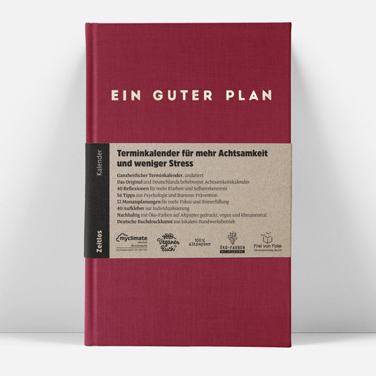 Ein guter Plan ist eine deutsche Marke für Achtsamkeit, Selbstreflexion und Burnout-Prävention, entstanden aus persönlichem Bedarf: Die Gründer Milena Glimbovski & Jan Lenarz entwickelten 2015 ein Reflexionsbuch, das langfristig begleitet statt nur Impulse zu setzen. Das Konzept verbindet Planungsstruktur mit Check-ins und Reflexionen, um Routinen bewusst zu gestalten. Produziert wird seit 2019 konsequent nachhaltig in Deutschland: Druck auf 100% Altpapier mit Ökofarben, vegan gebunden und ohne Folienverschweißung, mit bedarfsgerechter Produktion zur Vermeidung von Überbeständen. Bei WERTE FREUNDE Hamburg im Store ansehen und online bestellen.