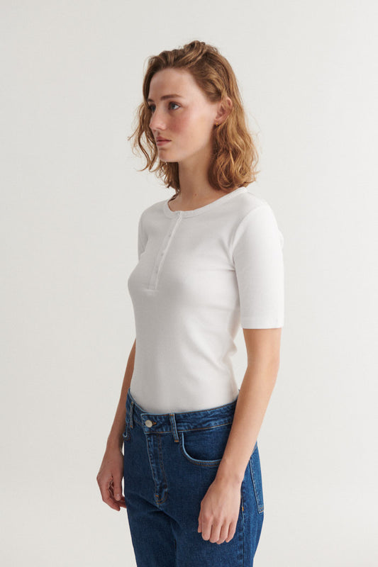 Basic Apparel - Ludmilla SS Granddad T-Shirt Bright White