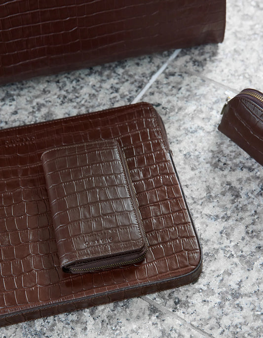 O MY BAG - Pencil Case Large - Chocolate Croco Leather