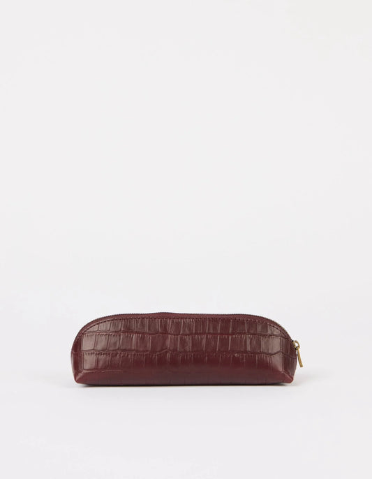 O MY BAG - Pencil Case Small - Dark Cherry Croco Leather