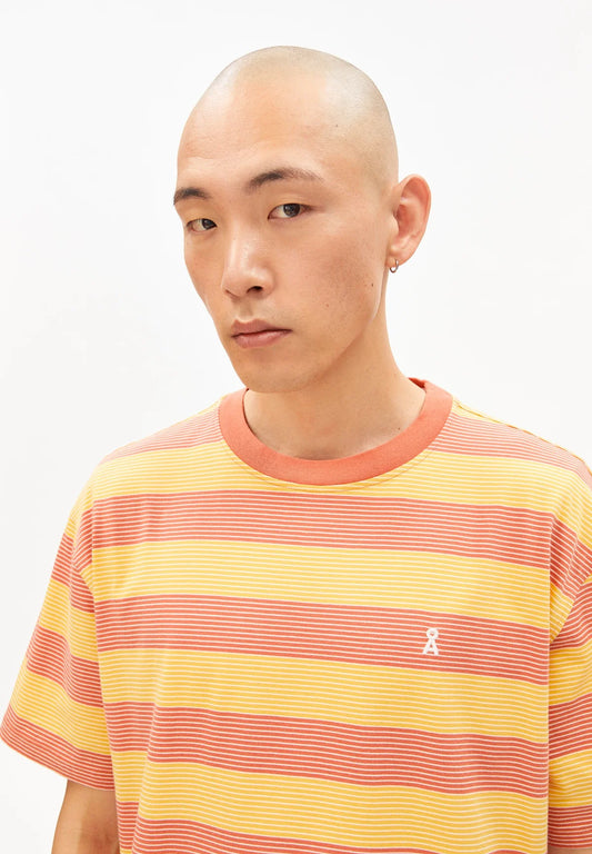 Armedangels - MAARKOS MULTI GESTREIFTES T-SHIRT sunflower-tabasco red